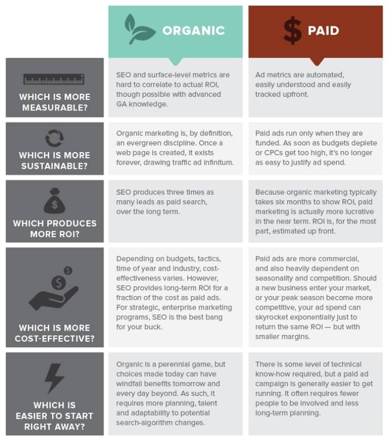 Paid advertising has its benefits and disadvantages. Organic traffic also has advantages and disadvantages.