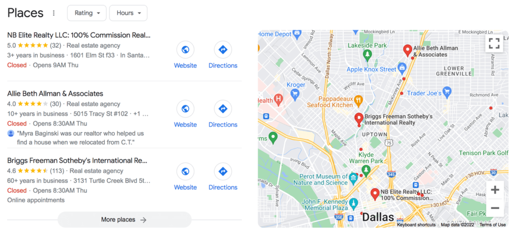 Therefore, optimizing your local search is very important, and this can be done by getting listed on directories such as Google My Business (GMB), Redfin, realtor.com, Zillow, etc.